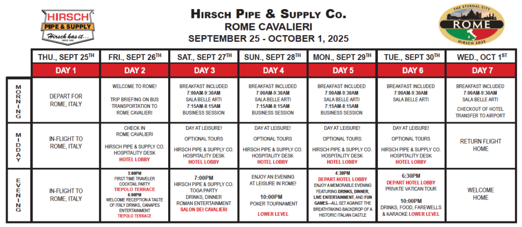 - 9/19/25: All colosseum tours will now leave at 8:15 am due to increased traffic activity.